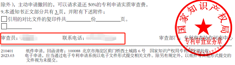 若对审查意见通知书中的内容存在疑问,可通过审查员联系电话向审查员咨询。